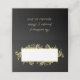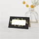 Elegant folded place card done in black with gold looking flourishes around a white text area, on the front. The inside of the place card has a gold tone look. Personalize the custom text, on the back of the card to read what you want. Personalize the front of each card, by hand, for your wedding reception.