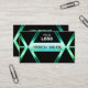 Make a lasting impression with this eye catching and elegant business card design featuring modern black geometric graphics with bright teal shimmer background.
