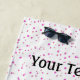This custom beach towel has a black and a white fancy cats sitting together in a mid century pink chair on a white background with pink dots. Customise your text with the template.