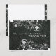 This rustic country thank you note features an image of tooled leather (a PRINTED effect) and floral lace. Shown on felt paper, but you can customize to suit your needs. Note that this is flat (non-folding).