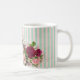 Fun and fancy digital collage features a pink and aqua striped background, pink and burgundy tint floral bouquet and vintage Alice in Wonderland Cheshire Cat illustration.