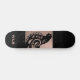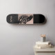 This skateboard has a vintage farmhouse chicken motif that's all gussied up in a black filagree with fancy cut-out swirls. It's set against a copper like rose gold background -- it isn't actually metal but just has faux metallic effects in a rose gold color. Your monogram name appears in a coordinating typeface on a black color block.