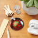 Image of fancy red Christmas ornament decorated with artistic gold and green glitter scrollwork fills this keychain -- so the keychain look like the ornament! Jingle your keys like bells on this festive keychain. The glitter is only simulated in the image.