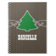Sweet and whimsical Fancy Christmas Tree Swirls Notebook featuring a swirl border and dots highlighting a fun holiday tree on a faux wood panel background. This charming Christmas notebook is easy to customize with the text of your choosing. Click on the "Customize It" button to find additional personalization options.