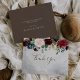Compliment your rustic wedding event with this fancy classic roses peony flowers wedding thank you card. The design features beautiful hand-painted pink, blush, blue, navy and burgundy flowers with green leaves, neatly grouped into elegant bouquets to embellish your event invitation cards.