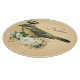Fancy vintage green bird with added crown and floral nest on peach background. Personalize in modern script black font