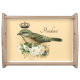 Fancy Crown Bird on Peach Personalized Serving Tray