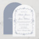 Fancy Dusty Blue Floral Boho Chic Arched Wedding Invitation