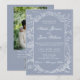 Fancy Dusty Blue Floral QR Code Photo Wedding Invitation