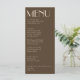 A fancy and retro luxury bright wedding dinner menu. Which features chic template design of old money vintage earthy brown background and cream typography and fancy menu. Perfect and matching with the whole suite.