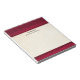 A notepad with a red background decorated with elegant swirls and ornamental designs along the borders. Faux parchment overlay in the center to write upon.