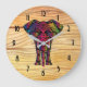 Fancy Elephant Illustration - Decorative Pattern Large Clock