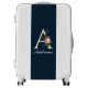 Fancy Floral Monogram A on Navy Luggage