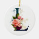 Fancy Floral Monogram Letter L Ceramic Ornament