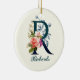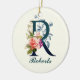 Fancy Floral Monogram Letter R Ceramic Ornament
