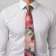 Introducing our latest fashion tie collection, where bold colors and intricate designs come together to tell a unique story. The centerpiece of each tie features three red flowers surrounded by green leaves, symbolizing love, passion, and growth. Perfect for special occasions or everyday wear, these fancy floral ties will elevate any outfit with their striking pink and orange hues.