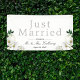 Celebrate the joyous journey of marriage with our elegant "Just Married" design, adorned with delicate white flowers. Perfect for adding a touch of whimsy and charm to the couple's getaway car, it's a delightful way to announce their newlywed status in style.