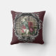 Whimsical pillow design features tinted version of the original Alice in Wonderland's White Rabbit collage cameo with fancy frame and dark purple background