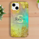 This captivating design features a stunning blend of soft watercolor art in vibrant pastels—including soft pink, glowing yellow, and brilliant turquoise blue—layered with rich, shimmering gold metallic foil and glitter texture. The dynamic, abstract background creates a high-fashion, glamorous look perfect for anyone who loves elegant and trendy aesthetics.