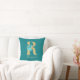 Fancy Gold & Aqua Floral Letter R Throw Pillow