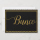 Creative gold colored lines frame the word Bunco. Stylish and elegant black and gold colored Bunco invite. Invite your family and friends to a fun night of Bunco.