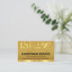 Just below the gold design is the business name, a slogan to publicize your services and the contact details.