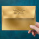 Elegant all-purpose occasion envelope done in gold graphics, with a semi transparent text area, on the front, decorated with a 3D looking gold floral piece. Inside the envelope there is graphics of a solid gold lining. Personalize the return address to suit your needs. Great for special occasion invites, thank you cards and announcements.