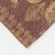 Beautiful, elegant pattern features facing pairs of gold peacocks with added gold embellishments on a brick red background