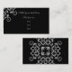 A gorgeous kaleidoscope design in black and gray that resembles a lacy and swirly damask type cross pattern printed on standard sized business cards.