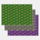 This elegant and luxurious style wrapping paper sheet set features the ordinal number "40th" with a faux/imitation gold-inspired coloring pattern appearance. The sheet background colors include green, grey, and purple. Fancy wrapping paper like this might be used when preparing gifts being given in honor of somebody’s 40th birthday, or perhaps a married couple’s fortieth wedding anniversary, or some other fortieth event. [~Z0000438]
