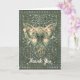 Folded greeting card features beautiful AI generated digital art design of a Steampunk butterfly in greens on a vintage ornate vines background. "Thank you" text on front can be customized or removed. Available as both a printed card and a digital download