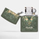 Personalized lighter features beautiful AI generated digital art design of a Steampunk butterfly in greens on a vintage ornate vines background. Add name or monogram