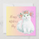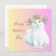 Pretty Mother's Day card for the cat lovin' moms features white cat with floral crown on gradient background