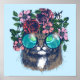 This design features a main Coon Cat dressed in a floral halo and blue tinted glasses.