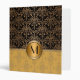Fancy Monogram Gold and Black Damask Design 3 Ring Binder