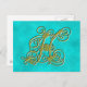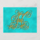 Fancy royal elegant monogram letter H in golden yellow on a cloudy background (can be deleted) placed on a colored background that can be changed too to any desired color or deleted entirely and replaced with a personalized photograph. Every letter of the alphabet is available on postcards with matching postage stamps in my Gallery. In addition, greeting or note cards are available while on the stamp image of the monogrammed letter of your choice.