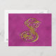 Fancy royal elegant monogram letter S in golden yellow on a cloudy background (can be deleted) placed on a colored background that can be changed too to any desired color or deleted entirely and replaced with a personalized photograph. Every letter of the alphabet is available on postcards with matching postage stamps in my Gallery. In addition, greeting or note cards are available while on the stamp image of the monogrammed letter of your choice.