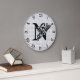 Fancy monogram / initial letter ' N ' in black silhouette on distressed grey and white harlequin background with Roman numeral clock face