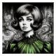 a stylized 1950s-inspired portrait of a young woman dressed in a puff-sleeved green dress