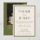 Fancy Old Money Olive Green QR Code Photo Wedding Invitation