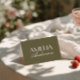Classy and fancy wedding place card designed for a clean and elegant old money reception table setting. This folded escort card features a handwritten script wedding name paired with contemporary typography. The dusty olive green and white old money wedding decor adds a fresh, stylish touch to your wedding. Perfect as a custom guest name card for a chic and simple wedding celebration. Use this elegant folded place card to elevate your modern reception table decor. A sophisticated contemporary wedding table card that complements any minimalist wedding theme.