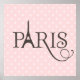 Pink and light pink polka dots pattern as background written Paris with the eiffel tower in the place of the letter a. Chic girly colors!