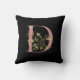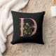 Fancy pink glitter letter D with gold leaves and swirls overlay and a coppery butterfly on black background.