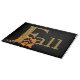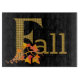 Pretty Fall / Autumn design features capital letter "F" with golden brown / brown plaid fill and an overlay of watercolor orange colored fall leaves, on black background