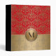 Fancy Red and Gold Monogram Damask Pattern 3 Ring Binder