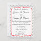 Plain white envelopes are included with paper invitations and will come to fit the invitation size you select. If you don’t need the envelopes, you may choose to not receive them by selecting the dropdown below "Envelopes" and choosing "None." If you’d like to have a design on your envelopes, you can browse all of these available envelopes to find the design that complements your Fancy Red And Gray Chevron Wedding Invitation.