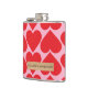 Fancy Romantic Red & Pink Hearts Pattern With Name Flask