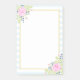 Fancy Post-it® Notes with roses, green leaves, and blueberry on light blue stripes, gold Thank You (gold is not real gold but color). Fancy, feminine, and ornate, yet elegant, with slightly Victorian look and feel. Pink, light blue, deep purple, green.