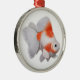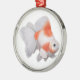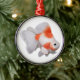 Original painting of a red and white Ryukin fantail goldfish by artist Carolyn McFann of Two Purring Cats Studio printed on a quality holiday ornament for tropical aquarium fish fans.