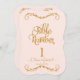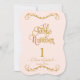 Elegant and sophisticated script typography and vintage decorative swirl elements in gold glitter over a soft blush pink. You can customize every number or name you need.
